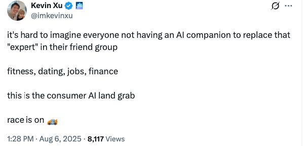 While I’ve spent the majority of this post thinking about B2B applications, I believe that the surface area for these types of applications may be even larger when we start to explore consumer-facing applications.